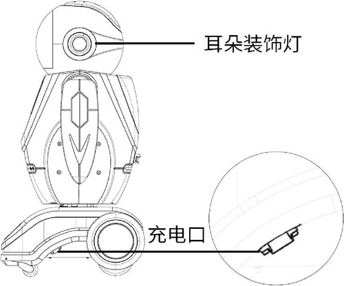 機器人的電源開關在機器人底部,控制機器人的開機和關機狀態。