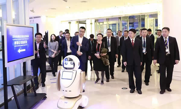 迎賓導覽機器人在大廳迎賓呢,然后帶大家游覽場館...