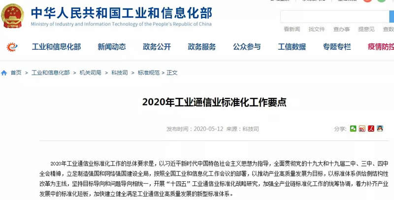 2020年5月12日,工信部發(fā)布《2020年工業(yè)通信業(yè)標(biāo)準(zhǔn)化工作要點(diǎn)》,提出聚焦5G網(wǎng)絡(luò)與應(yīng)用、人工智能、工業(yè)互聯(lián)網(wǎng)、物聯(lián)網(wǎng)、數(shù)據(jù)中心、車(chē)聯(lián)網(wǎng)、智能制造、無(wú)人機(jī)、超G清視頻、虛擬現(xiàn)實(shí)等重點(diǎn)L域,以專(zhuān)項(xiàng)方式成體系推進(jìn)重點(diǎn)L域行業(yè)標(biāo)準(zhǔn)制定工作,促進(jìn)產(chǎn)業(yè)基礎(chǔ)能力和產(chǎn)業(yè)鏈現(xiàn)代化水平提升。