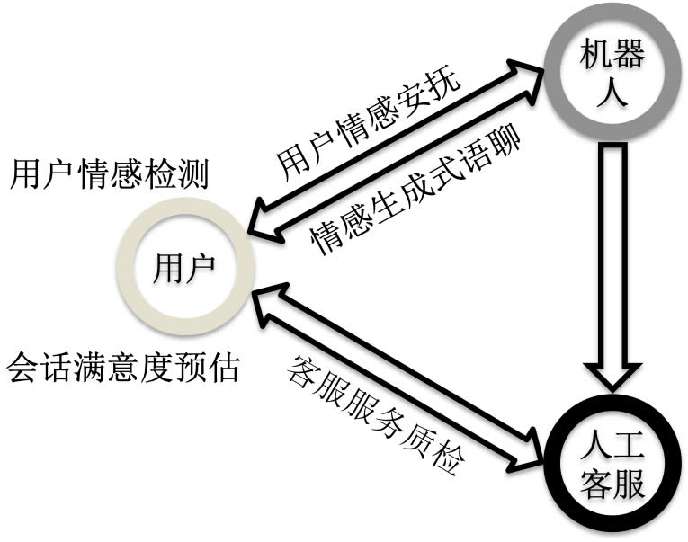 智能客服系統的構建需要依托于行業數據背景,并基于海量知識處理和自然語言理解等相關技術。初代智能客服系統主要面對業務內容,針對G頻的業務問題進行回復解決,此過程依賴于業務專家對G頻業務問題答案的準確整理,主要的技術點在于準確的用戶問題和知識點之間的文本匹配能力。新型的智能客服系統將服務范圍定義為泛業務場景,除了解決處理核心的G頻業務問題,智能導購能力、障礙預測能力、智能語聊能力、生活助理功能以及生活娛樂交互等方面的需求也同樣被重視和涵蓋。其中,情感能力做為類人能力的重要體現,已經在智能客服系統的各個維度的場景中被實際應用,并且對系統類人能力的提升起到了至關重要的作用。