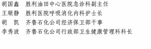 王順靜 勝利醫(yī)院呼吸消化內(nèi)科護(hù)士長(zhǎng)胡凱 齊魯石化公司經(jīng)濟(jì)保衛(wèi)部干事