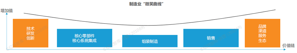 公共服務機器人產業鏈符合“微笑曲線”理論,產業鏈附加價值集中于上游核心技術部分以及中游機器人廠商對下游用戶的商業行為,中游機器人