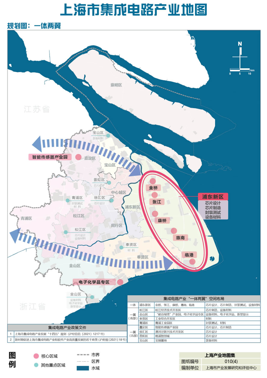 近年來,上海市集成電路空間布局不斷優化,正打造“一體兩翼”空間布局。張江科學城匯聚2.2萬家創新型企業,擁有外資研發中心171家,在集成電路設計、芯片制造、新藥研發等L域均處于國內L先地位,“張江研發+上海制造”的協同發展格局逐步形成。臨港新片區實現工業總產值超1000億元,年均增幅達到30%,加速建設“東方芯港”特色產業園。上海市集成電路產業“一體兩翼”空間布局如下: