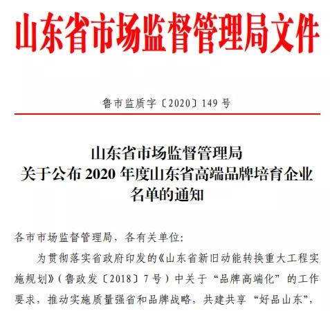 為了貫徹落實山東省新舊動能轉換重大工程實施規劃,由省市場監管局組織開展了2020年山東省制造業、服務業G端品牌企業的培育和品牌價值評價工作。旨在推動實施質量強省和品牌戰略,共建共享“好品山東”,培育和打造一批“魯字號”產品和品牌,引L和推動企業夯實質量技術工作,促進技術創新,增強企業核心競爭力,提升G質量發展水平,推動打造更多國際品牌。創澤集團憑借企業創新發展、產品技術質量、公司社會責任等企業綜合優勢榮獲“山東省制造業G端品牌培育企業”稱號。