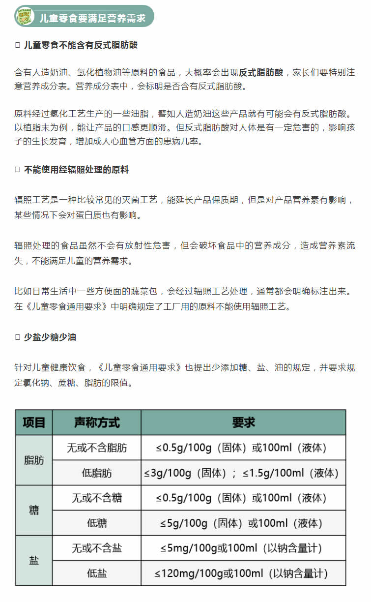 此外,這次的新標準首次提出“兒童零食”的定義,區別于普通零食,兒童零食指適合3-12歲兒童食用的零食。