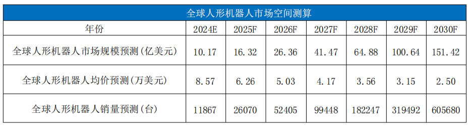 到2030年人形機器人市場規(guī)模將達到151億美元,2024-2030年CAGR 將超過56%,人形機器人銷量將從1.19萬臺增長至