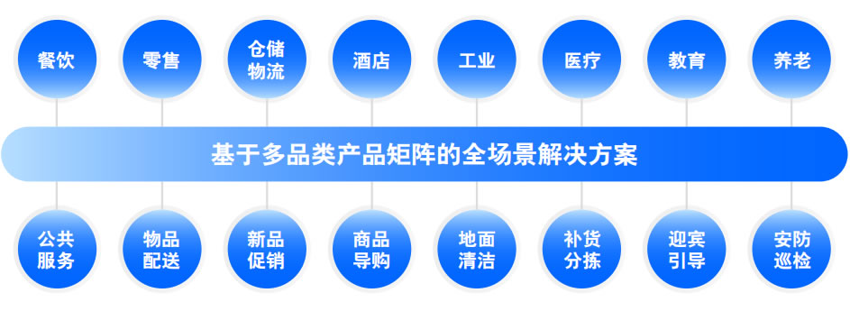 隨著服務機器人在餐飲、零售、倉儲物流、酒 店、工業、醫療、教育、養老、公共服務等各行 業中加速應用滲透,服務邊界持續拓展深化,與 此同時,在差異化的場景中仍然存在著搬運、清 潔、迎賓交互等多種共性的復合需求。