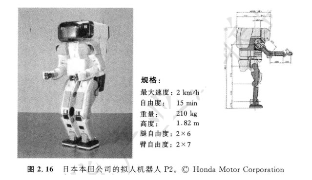本田公司的擬人機器人項目有著值得注意的發(fā)展經(jīng)歷。但是此外,它還抓住了 激勵的非常重要的工程挑戰(zhàn)。圖2.16展示了模型 P2, 它是Z新模型 Asimo (在發(fā)明 移動性中有超前步伐)Z直接的先驅(qū)。注意,Z新的本田 Asimo 模型仍然比 SDR- 4X I大得多,高120 cm, 重52 kg 。這可在保持不危險尺寸和姿勢的同時,能在有樓 梯和臺階的人類環(huán)境中具有實用的機動性。也許這是展示仿生的雙腳上下樓梯的第 一個機器人。這些本田擬人系列的機器人不是專門為娛樂目的而設(shè)計,而是作為整 個社會的人類幫手而設(shè)計。例如,本田公司把Asimo 的高度當(dāng)作機器人能對人類環(huán) 境進行管理操作(如控制燈開關(guān))的Z小高度。
