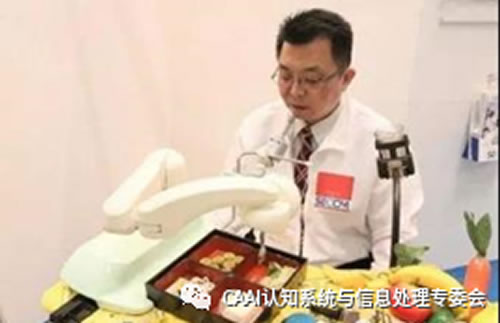 日本相關研究者開發了一款喂食機器人,名叫“My Spoon”,殘疾人可以利用利用嘴巴、手或腳控制一個操作桿吃飯。機器人手臂前端裝有叉和勺子,能夠將食物自動夾起,并送到操作者嘴邊。豆腐等軟性食品則可以用勺直接舀起,飯菜送到嘴前,上層的叉子還會感應縮回,不會傷到使用者的嘴巴,靠著喂食機器,頸部以下癱瘓的病人、肢體不便的老人,也能自行進食。