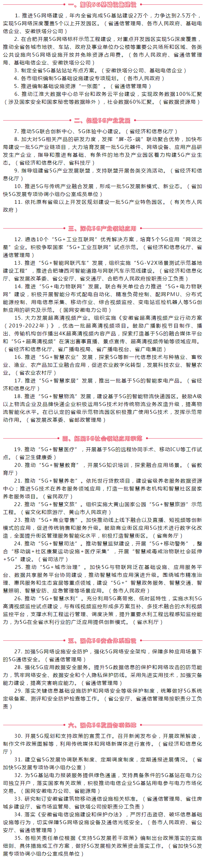 現(xiàn)將《2020年安徽省5G發(fā)展工作要點》印發(fā)你們,請結(jié)合職責分工,抓好落實。