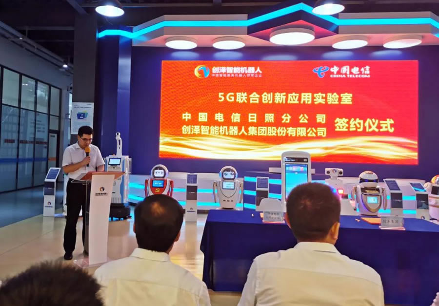 7月29日,創澤智能機器人集團股份有限公司與中國電信公司5G聯合創新應用實驗室合作協議簽署儀式在創澤集團順利舉行。中國電信股份有限公司日照分公司劉峰總經理、周慶運副總經理、省公司張洪生主任、張傳隆主任、創澤集團董事長李慶民等L導出席簽約儀式。