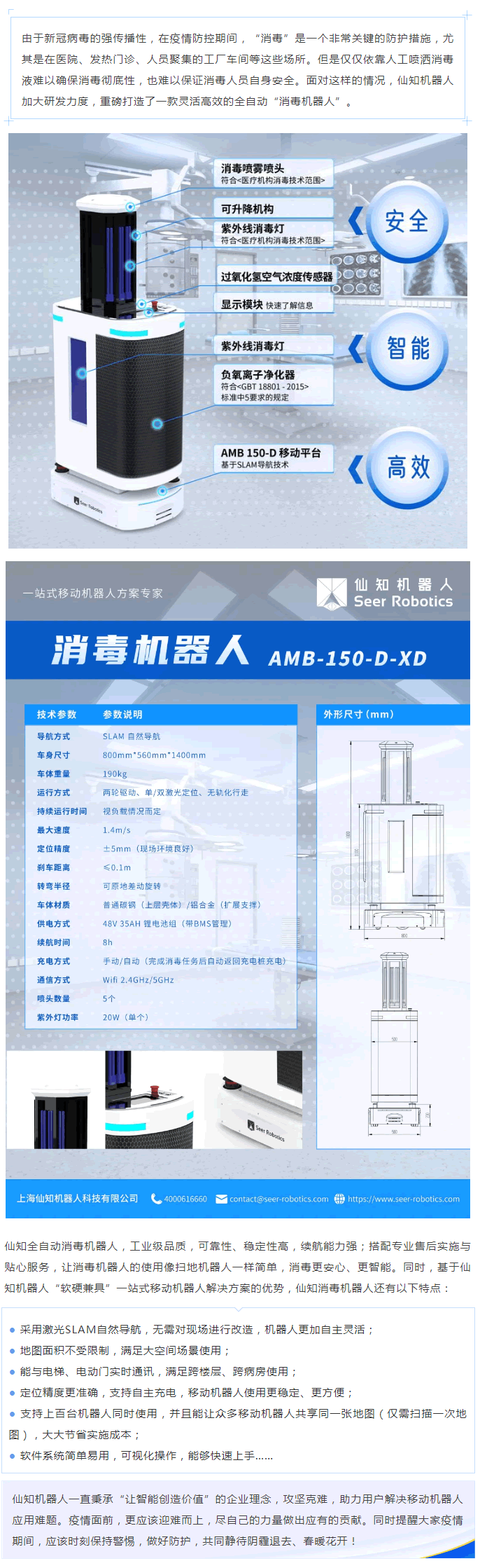 智能消毒機器人 (等離子+霧化款)大幅度地降低醫護工作者的工作強度和被感染的概率,助力抗疫工作建設,新型G狀病毒引發肺炎疫情防控工作作出貢獻