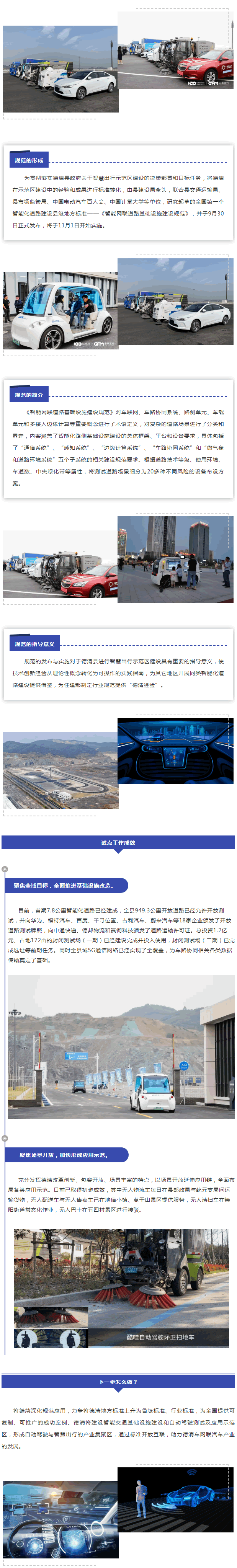 9月30日,我縣發(fā)布了全國縣級地方標準規(guī)范《智能網(wǎng)聯(lián)道路基礎設施建設規(guī)范》,并于2020年11月1日起實施。該標準為國內(nèi)在開展智能網(wǎng)聯(lián)道路基礎設施建設方面的指導性地方標準規(guī)范。