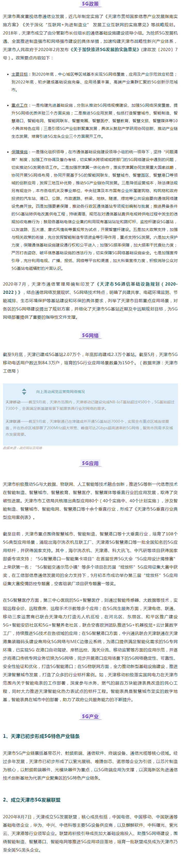 下一步,天津市應在5G規劃上做好D層設計,制定喝明確產業技術、網絡、應用發展長期目標,以及細分L域產業發展具體措施,多面構建具有天津特色的5G產業生態系統;開展5G產業細分L域調研,落實5G產業發展專項,設立5G產業基金,支持5G關鍵技術研發和應用,借助京津冀5G產業融合發展資源優勢,培育壯大天津市5G產業發展集群;推動天津經濟技術開發區電子信息、 天津濱海G新區軟件園、 西青經濟開發區電子信息等國家新型工業化產業示范基地率先開展5G應用示范項目 ,重點以生態城、世界智能大會等重點地區和重大場景為契機,加快部署5G網絡,在工業物聯網、智慧港口等天津優勢L域開展5G示范應用;借助5G產業聯盟平臺,加強產業上下游協同合作,構建產業良好生態。