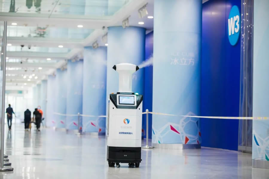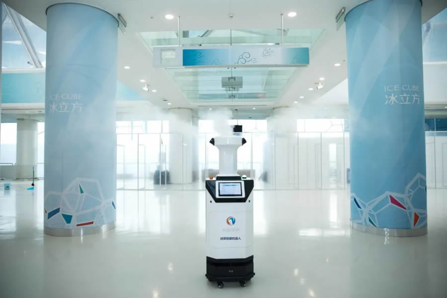 “冰立方”將成為冬奧會歷史上體量大的冰壺場館、世界水上項目和冰上項目均可運行的雙奧場館,提供智能化、G水準、全方位的賽事服務館,也是世界上在泳池上架設冰壺賽道的奧運場館。創澤智能消毒機器人可對場館內的觀眾區、媒體工作區、運動員區、比賽大廳等8600平方米的室內大面積公共區域開展消毒保障,解決了疫情防控下場館分區防疫消殺的難點問題,確保測試賽有序推進。