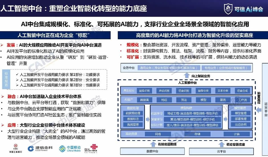 人工智能中臺重塑企業(yè)智能化轉(zhuǎn)型的能力底座。隨著企業(yè)從重視人工智能的“研發(fā)”,到“研發(fā)-運營”并重,AI開發(fā)平臺也逐漸向AI中臺演進。
