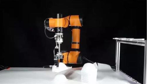 利用柔性抓取工具配合輕型協(xié)作機(jī)械臂,研發(fā)出N95口罩自動化分揀系統(tǒng),可以快速部署在口罩生產(chǎn)線上,代替人工分揀。
