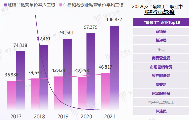 新G疫情大流行,造成勞動力整體流動性下降,勞動人口與崗位錯配,同時受限于整體工資水平低下,服務業勞動力短缺問題愈發嚴重;
