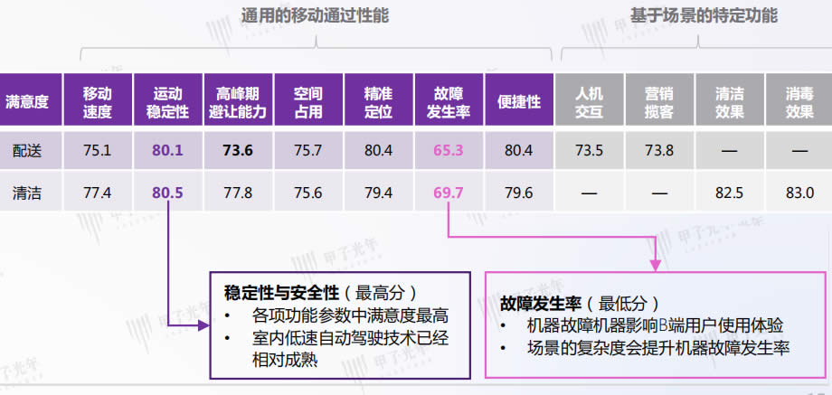 場景內使用商用服務機器人的機會越 多,產品的魯棒性也就越強,用戶的滿意度越G;對無接觸要求越嚴格的場景,服務機器人的使用頻率越G,滿意度也相應提G