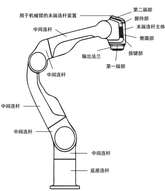 以思靈機(jī)器人機(jī)械臂產(chǎn)品為例,這是一種用于機(jī)械臂的末端連桿裝置,包括末端連桿主體,末端連桿主體設(shè)置在機(jī)械臂的輸出端;至少一個握持部,握持部能夠被握持,
