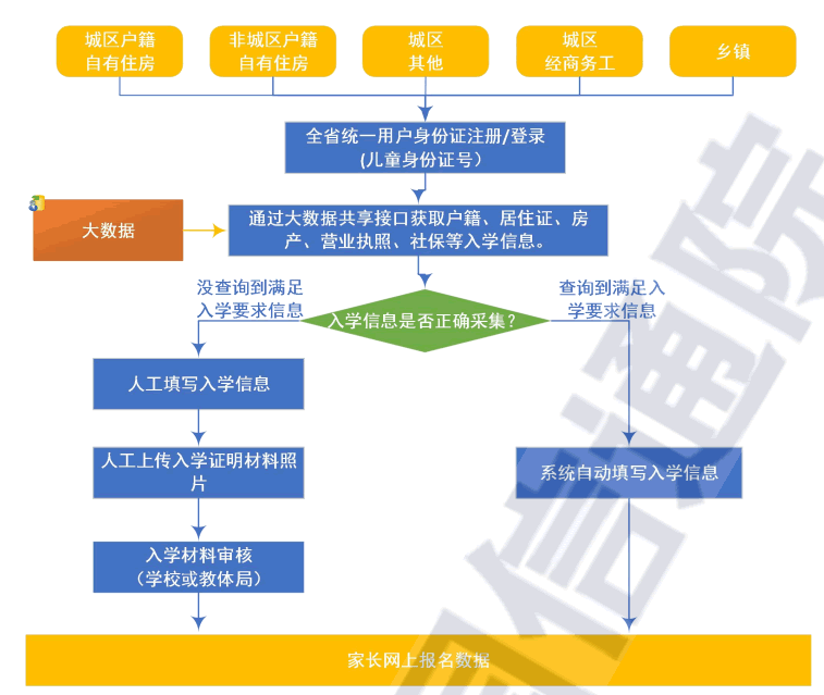 采用數據查詢接口作為共享接口,家 長只需在網上注冊填報必要的身份信息,報名系統后臺即可直接通過 查詢接口從相關業務部門調取數據自動填寫,有效避免了信息誤填、 造假、誤判等問題,保障了報名材料的真實性,大大減輕了教育部門 和學校審核入學報名材料的負擔,學生家長也無需再上傳任何證明材 料,真正做到了“零材料”報名,讓招生入學更加公平、公正、公開。