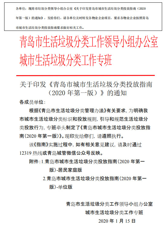 青島市生活垃圾分類(lèi)工作L導(dǎo)小組辦公室城市生活垃圾分類(lèi)工作專(zhuān)班